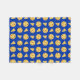 Pizzapresentidéer. Cute pizza och pizza slices med ost, svamp, paprika och pepperoni av grönt med blå bakgrund. Perfekten på pizza älskare.