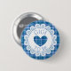 Blå knapp för babydusch med blått hjärta och Polka dots Gigi för att bli knapp