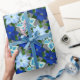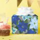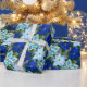Denna papper med blå poinsettia-julomslutning har blå poinsettiska blommor i flera skuggor och struktur på en grått- och silver-speglad bakgrund. Ett vackert blommönster målade julen för att dekorera helgdag Julgran i ett blått och silver. Du kan göra mönster på den här presentfiguren större eller mindre.