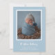 Elegant söt tillkännagivande för födelse har ditt favoritfoto av nyfödda pojke i blå bakgrund med blå och vit ram, baby namn, födelsestatus och namn i vilket teckensnitt du vill ha nedan. På baksidan ändrar du bakgrunden färg under vitt polka dots till färg som kostym på fotot eller tar bort polkamotövertäckningen. Du kan också lägga till fler foton på baksidan!