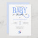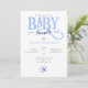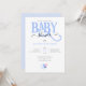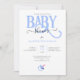 Blåblå POJKE SHOWER-inbjudan med blå BABY-typografi och liten blå nappar
