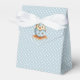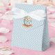 Enkel pastellblå affär med illustration av en fågel i ett grönt ägg. Perfekt för babydusch gynnar gåvor. Illustrerad och designad av Patricia Alvarez.