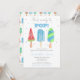 Fira din lilla pojkes ankomst med den här Blue Popsicle Baby Shower-inbjudan. Med färgstarka vattenfärgscykler, inklusive ett rött vattenmelonsegment, en coola blå frusen behandling och en blå och grönt snurra, är den här utformningen perfekt för en uppfriskande och glad babydusch. Den här babyduschinbjudan är perfektens sätt att ange tonen för en söt och glatt sammankomst. Få redot att fira med påsar av färg och roligt! BBS380