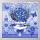 Ett antikt porslin kopp fyllt med blåa blommor och fjärilar mot en antikisk snöre bakgrund. Det ser underbart ut som ett par med Blue Porcelain Birds och Birdcage poster.