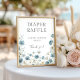 Blue Preppy Flowers Watercolor Diaper Raffle Sign Poster