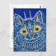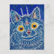 Ett vykort för konst i bran med en abstrakt blå kattillustration av den engelska konstnären Louis Wain (1860-1939). Han är känd för sina illustrationer och är mest berömd för sina skildringar av djur och pastorala scener, särskilt hans utpräglade stora katters fullt av karaktär. Teckning är från sin psykedeliska period.