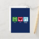 Söt fysisk terapeutisk gåva. Fred kärlek och fysisk terapi mot mörk blått bakgrund.