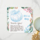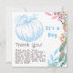 Blå Pumpkin Gender Reveal Party Tack Den söta genderna för modern trendig visar partivisitkort med en vattenfärgad illustration av en blå pumpa med höst löv. I texten står det: "Tack! Det är en pojke med en personlig-Perfekt för en gender som avslöjar party i hösten och hösten