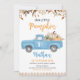 Fira din lilla speciella dag med den här charmerande blåa pumpkin Lastbil-födelsedagsinbjudan. Med en vintage blå lastbil fylld med pumpor i mitten är denna utformning perfekt för en fallande födelsedagsfest med rustika och säsong. Överdelen är adorberad med färgat höst löv medan grund har ett mysigt brunt plaid mönster, vilket tillför värme och charm till inbjudan. Idealisk för en pojkes pumpkindmatade födelsedag eller någon höst firande! BRT151