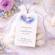 Elegant wedding favor tag featuring a blue, purple, and gold abstract heart design with soft watercolor and alcohol ink texture.