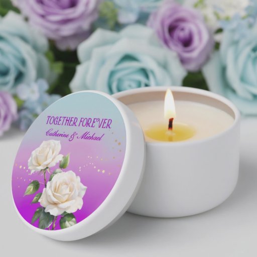 Add a refined finishing touch to your reception tables with this elegant wedding place card, designed in a soft pink purple floral wedding palette. The gentle gradient flows from airy blue into rich violet, beautifully framing delicate ivory roses and subtle golden accents. Inspired by lavender blush rose wedding tones and a timeless violet vintage rose aesthetic, this card blends romance with sophistication.