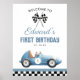 Blue Race Car 1st Birthday Welcome Sign Poster