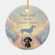 Keep your dachshund's memory close with this elegant blue watercolor rainbow bridge ornament. This personalized pet memorial ornament features a beautiful dachshund silhouette crossing the bridge and can be customized with your beloved pet's name, life dates, and a special message. A meaningful doxie memorial keepsake for Christmas tree display or year-round remembrance.
