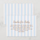 Kortet för handskriven babydusch "Bokar för Baby" med blått lodrät rand.