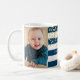 Anpassadets fotosamlingsmall god jul mugg för bästa mormor någonsin med anpassade i marint blått och vitt rand mönster med festive guld konetti. En underbar gåva till vilken mormor som helst.