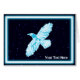 En enkel, glödande, blå och vit linjebild av en Raven (Corvus corax) på en stjärnbakgrundsbild. Lägg till din egen text.