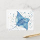 En häpnadsväckande vattenfärgsillustration av en fläckig singrocka som glider i ett hav av mjuka blå och gyllene bubblor. Det milda kurvor och de ömtåliga fläckarna på vingar väcker elegans och lugn och fångar havets skönhet med ett konstnärligt fläkt. Denna fantastiska konst gör att djuphavets magi kommer till liv i ett viskigt, drömt stil.