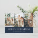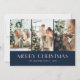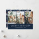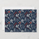 Blått och rött botaniskt God jul-kort för anpassningsbar med fotokollage på mörk blått bakgrund. Ett blått, rött och vitt botaniskt mönster på baksidan. Anpassa den här elegantens fotojulkort med foton och text.