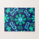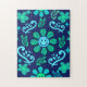 Blue Retro Style Floral and Sun Symbol Pattern Pussel