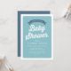 Anpassadets retro-inbjudan till babydusch. Den här inbjudan till blå babydusch innehåller vintage-typografi och enkel typografi. Anpassa genom att lägga till din händelseinformation. Den här vintagen-inbjudan om babydusch finns i andra färg.