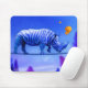 Blå noshörning med zebra linjer på ett rep över blå luddra träd bakgrund