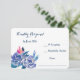 Den här OSA kort har en bouquetbild av blått ro, med en kompletterande rosa violett, blå och akvatisk löv. Din anpassningsbar är i motsvarande blått. Bilden och texten placeras på en vit bakgrund. Kortets baksida matchar blått. Se till att se motsvarande bröllop-produkter, inklusive inbjudningar, i vår butik.