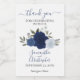 Dessa vackra minisärmärken från vin är perfekt som bröllopsfavörer, eller för att tacka ledamöterna i brudens sida. Den roustiska boho-chicen är utformad med ett kluster av handmålad vattenfärg ro och löv i skuggor av dammig blått, marin och indigofärgad. Texten användor ett handskrivet skriptteckensnitt och läser Tack för att fira med oss. Det finns utrymme för namn och bröllop-datumet, liksom för vin eller flaska innehåll.