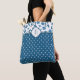 Grund-delen av den här väskan har en söt blå och vit polka-punkt mönster. Längst upp finns ett band med en blå ro-utskrift på vit bakgrund. De två avsnitten är åtskilda med tunna, mörka, blå remsor och en vanlig banderoll med ditt eget monogram. Baksidan av påsen har samma polarpunktsutformning med blommigten band, men utan banderoll eller monogram. Snygg för vår och sommar, och personlig för dig!
