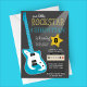 Turn up the volume for an unforgettable celebration! This blue rockstar birthday party invitation brings bold, music-themed style to your child’s special day. The design features a striking blue electric guitar illustration paired with a cool retro amplifier graphic that displays your event details in a fun, concert-style layout. The headline mixes modern script and bold block fonts, creating an energetic “rockstar” look kids love.