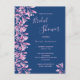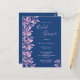Ett trendig blommigt Inbjudningskort för möhippan i blått och rosa. En blå bakgrund som dekoreras med botaniska färgader av rosa och löv. Modern stor, hanterad text, typografi med texten: Möhippa. Mallar för bridens uppgifter om namn och party. Rosa text. Bakåt: blå bakgrund. Tips! Om du inte vill att det ska se ut som ett vykort klickar du på anpassa, går till baksidan och tar bort delaren och lägger till frimärke.