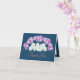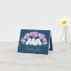 Vackra trädgårdar med rosa och lila krokblommor och vit ros mot blå bakgrund i färg. Rosa färg hälsning användor ett attraktivt typsnitt för skript. Blommorna täcker framsidan av detta kort som kan användas som ett tackkort, ett födelsedagskort eller något annat kort som du väljer. Anpassa den med din text och/eller bilder för att göra den till en sorts!