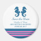 Elegant och klassisk sjöhäst Spara datum magneter med ett par enkla sjöar och en rad rand i mörkens sjöblått och rosa. Den här sjöstranden som temat spara datum magneter kan enkelt anpassas med dina bröllop-uppgifter. Om du vill ha fler anpassningsalternativ klickar du på knappen Anpassa.
