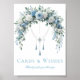 Create a beautiful station for guest messages with this Blue Rose & Silver Cross Baptism Cards & Wishes Sign. This elegant design features a lush overhead arch of watercolor white and dusty blue roses, accented with soft eucalyptus greenery. Centered beneath the floral arrangement is a delicate silver filigree cross suspended by shimmering metallic chains and tassels, offering a sophisticated and modern take on traditional religious symbols.