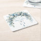 Protect your surfaces while maintaining a sophisticated reception aesthetic with these Blue Rose & Silver Cross Baptism Coasters. Each coaster features a breathtaking overhead arch of watercolor roses in elegant dusty blue and crisp white, intertwined with soft eucalyptus and botanical greenery. Suspended from the floral arrangement is a delicate silver filigree cross, accented by shimmering metallic chains and tassels that provide a refined, high-end boutique look.