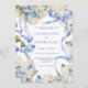 Helt underbar inbjudan från elegant bröllop. Med fintvättande vattenfärgblommor i mjuka, drömblåa nyanser, lush grey och elegant som flyter från rosett band Gorgous blue & white hydrangeas skapar du ett bedövande ram. Dessa inbjudningar fångar skönheten och glädjen vid detta speciella tillfälle. Designade med försiktighet och noggrannhet är de perfekter för att ange tonen för firande, vare sig det är en mysigt sammankomst eller ett genomarbetat evenemang. Anpassa dina inbjudningar så att de blir unika för dina och lämnar ett bestående intryck på dina gäster.