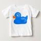 Enkel illustration av en söt tecknad blå anka leksak. Bild finns tillgänglig på olika presenter och produkter. Anpassa och välj en egen bakgrund färg eller lägg till text om det behövs.
