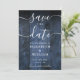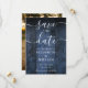 Den här eleganten blått jullägeskort i lada boho bröllop spara-the-date-kortet kan vara personlig med dina uppgifter i chic typografi och ett speciellt foto på motsatt sida. Designad av Thisisnotme©