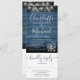 Allt i en bröllopsinbjudan med söt string ljus och Mason burk, modernt namnteckning namn och elegant typografi på blå, rustik träbakgrund. Inbjudan innehåller en OSA kort som kan stängas av och information om gästinformation. Designad av Thisisnotme©