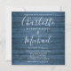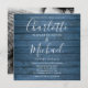 Blue Rustic Wood Namnteckning skriptfotot Bröllop Inbjudningar