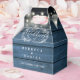 En elegant rustik bröllopsförmånslåda med strängen ljus och handdragen bladbreda blommigtar på vintage blå träpaneler. Du kan anpassa dig med ditt eget tack till ditt meddelande på motsatt sida. Ett perfekt sätt att tacka gästerna! Designad av Thisisnotme©