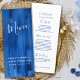 Vacker blå safir, graderad tonmålad bröllop-middagsmeny eller speciell händelsemeny. Redigera den här 4-kursmenyn med din egen ord. Enkel men modern tvätta en blå safir-meny. Perfekt för ett rik blått bröllop eller safir 45-årsjubileum bröllop. © Design och original abstrakt tavla av www.mylittleedenweddings.com på zazzle.