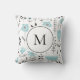 Vitmisk och skandinaviskt inspirerad kudde. Det har ett blått och svart blommönster. Anpassa genom att lägga till ditt monogram. Den här blommigten är perfekt som en personlig gåva. Matchande objekt är tillgängliga.