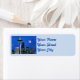 Blå vattenfärgsversion av berömdens skylt i Seattle, Washington under fullt måne.