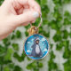Blue Shark Boy Anime Art Rund Silverfärgad Nyckelring