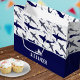 Lägg till en liten liten pojkes födelsedagsfest med den här anpassningsbarna blå och vit mönster-presentsäck. Gift väska har söta hajar som simmar i havet och din lilla är första namn. Födelsedagsfestens presentväska gör ett underbart tillägg till en barnfödelsedag eller en barnduschpresent!