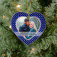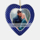 Det här är en underbar fotomall julprydnad för ett nylott par, eller ett par som firar sin första helgdag tillsammans. Ditt eget foto är mitt på framsidan i ett silver invändigt hjärta ram som placeras på en blå och silver diamant mönster. En banderoll vid grund innehåller anpassningsbarna mörk blått. Baksidan av dekoratet har ett silver-hjärta med mer anpassningsbar på samma bakgrund. En vacker keepy!