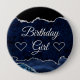 Blue & Silver Glitter Marble Agate Birthday Girl Knapp