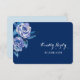 Svarskortet i söt bröllop har elegant blue och silver vattencolor ro som dekorerar det lämnat hörnet. Din anpassningsbar finns på högerna. Blommigten och texten placeras på en djup blå bakgrund. Baksidan av inbjudan är solid light blue, som gör det enkelt för svaranden att markera, med anpassningsbarna mörk blått. Se till att se matchande bröllopsinbjudningar och andra bröllop-produkter i vår butik.