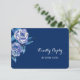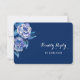 Svarskortet i söt bröllop har elegant blue och silver vattencolor ro som dekorerar det lämnat hörnet. Din anpassningsbar finns på högerna. Blommigten och texten placeras på en djup blå bakgrund. Baksidan av inbjudan är solid light blue, som gör det enkelt för svaranden att markera, med anpassningsbarna mörk blått. Se till att se matchande bröllopsinbjudningar och andra bröllop-produkter i vår butik.