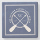 Perfekt underlägg för sjö hus i blått och vitt med ett sjömansmonogram med korsade kanotpaddlar och ett runt rep gräns. Anpassa med ditt första, familjens namn och år.